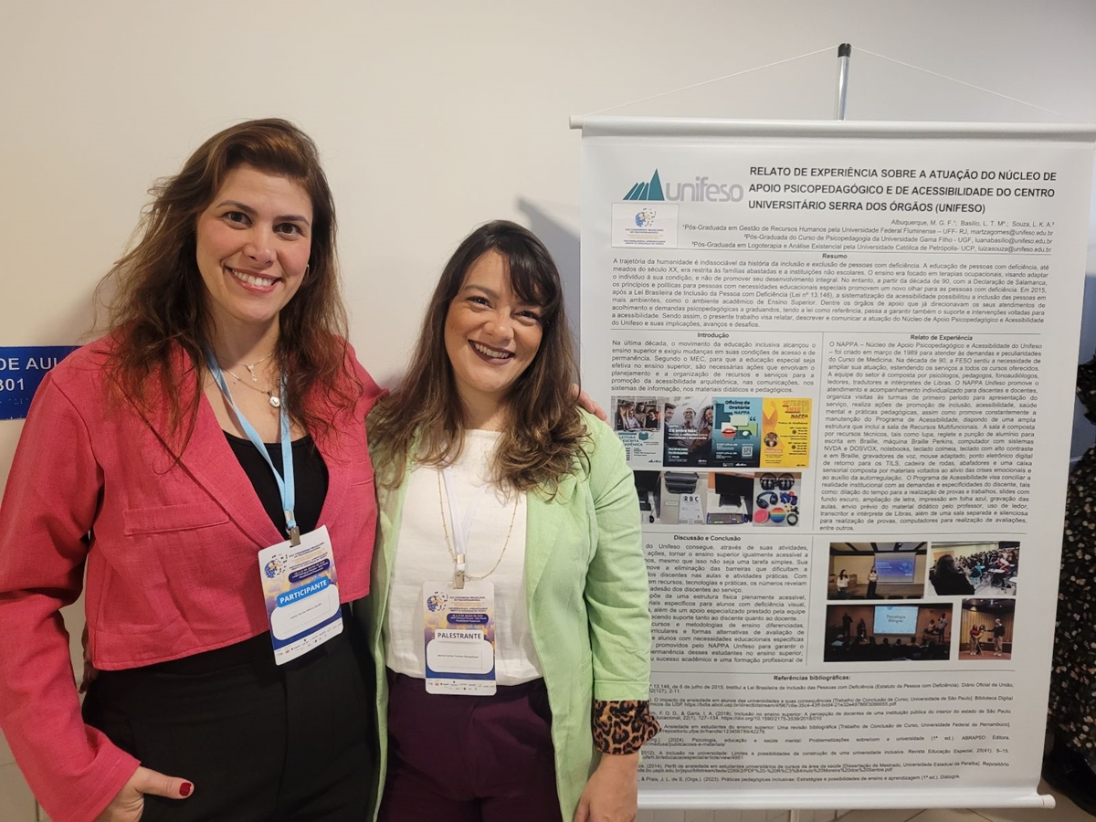 A pedagoga do NAPPA, Luana Tarcila Marins Basilio, também representou o Unifeso na apresentação do pôster. Ela ressaltou a relevância do trabalho para valorizar as iniciativas desenvolvidas pelo núcleo. "Mostramos como atuamos para garantir acessibilidade no Ensino Superior, com práticas como adaptações de materiais, intérprete de Libras, uso de tecnologias assistivas e apoio pedagógico especializado. Foi muito enriquecedor trocar experiências com outras instituições e refletir sobre a nossa prática", contou.