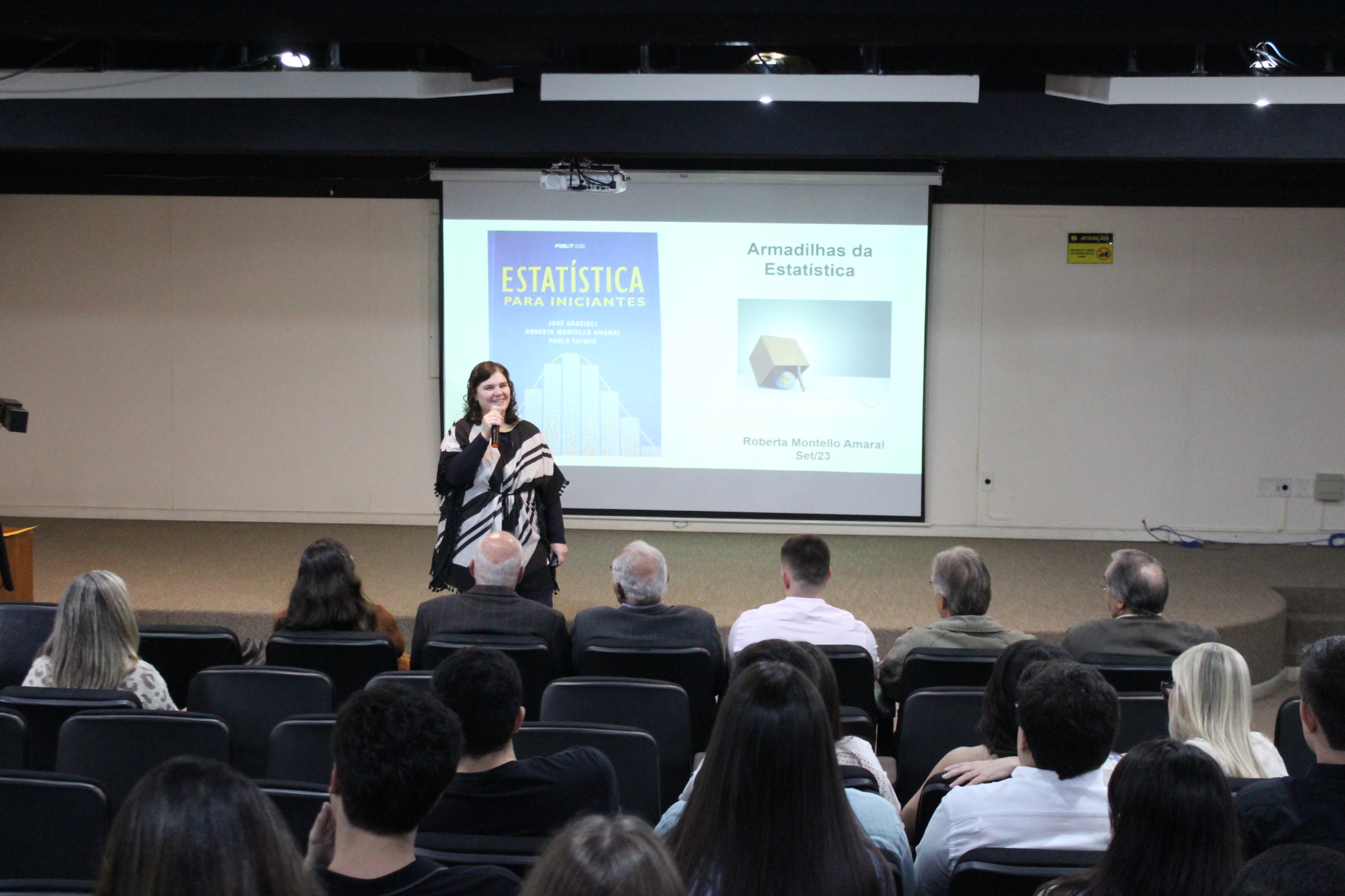 A professora Roberta, na palestra “As armadilhas da estatística”, informou que se trata de um assunto que traz muito medo para as pessoas em geral, porque há uma mística por detrás, mas a verdade é que a estatística confere um respaldo importante para qualquer trabalho acadêmico. “É possível que a maioria de vocês tenha receio em relação à estatística. E aí, quando temos que usá-la em um trabalho, fica complicado. Mas a verdade é que quando usamos a estatística tendemos a cometer menos erros”, disse a professora.