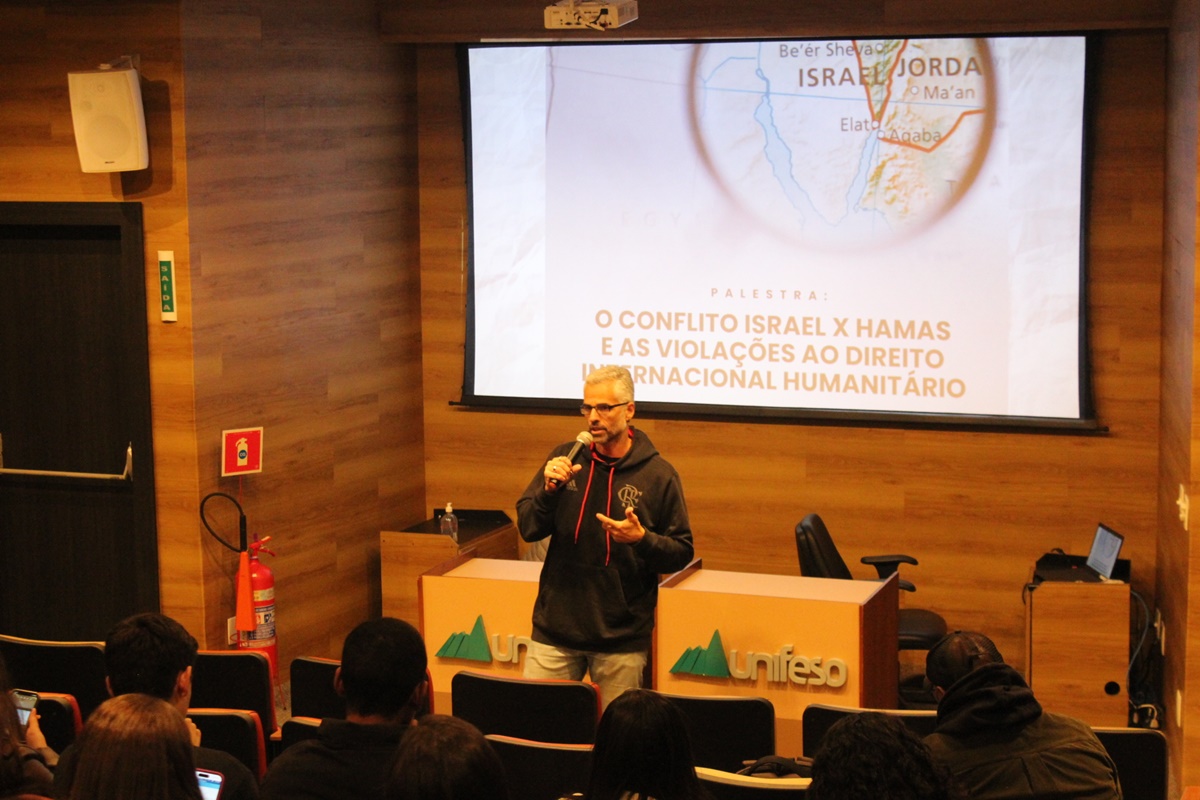 Pensando em trazer aos alunos do curso de Direito do Centro Universitário Serra dos Órgãos (Unifeso) um olhar jurídico e humanitário para o conflito armado que se desenrola no Oriente Médio, o Núcleo de Direitos Humanos (NDH) realizou uma palestra na última quinta-feira, 14 de agosto, sobre a guerra entre Israel e o grupo terrorista Hamas.